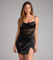 Designed to command a second glance, the Hillary is a sultry satin mini that moves with allure. With its softly draped cowl neckline, sheer lace corset bodice, and sculpting bodycon fit, this is the dress you slip into when RSVP’ing yes means showing up unforgettable.